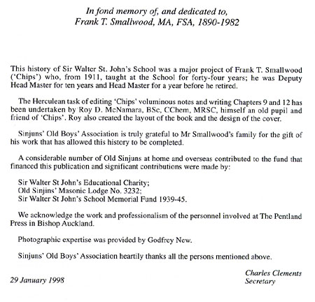 For those of you who would like more information on the history of Sinjun's we recommend the excellent book by Frank T. Smallwood, MA, FA, "A History Of Sir Walter St. John's School Battersea, 1700 - 1986".